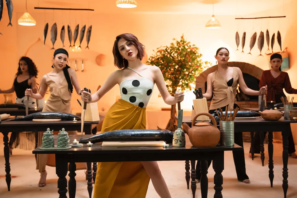 Trong MV Ai chờ ai sử dụng rất nhiều hình ảnh ẩn dụ nhằm thể hiện nỗi buồn, sự tổn thương không bao giờ nguôi ngoai của một cô gái từng chịu sự phản bội trong tình yêu. Xuyên suốt MV là hình ảnh những chú cá lớn nằm trên thớt, tượng trưng cho tật xấu bắt cá hai tay của chàng trai. Còn hình ảnh những cô gái đi lại khắp nơi với chiếc dao găm sau lưng khiến người xem dễ dàng liên tưởng đến nỗi đau khi bị chính người mình yêu thương và tin tưởng nhất đâm sau lưng. Giám đốc sáng tạo Denis Đặng chia sẻ: “Hình ảnh con dao trong MV Ai chờ ai không mang yếu tố bạo lực mà là sự lột tả chân thật nỗi đau của người phụ nữ bị tổn thương bởi sự lừa dối trong tình yêu. Chỉ có những ai đã từng trải qua mới có thể đồng cảm”.