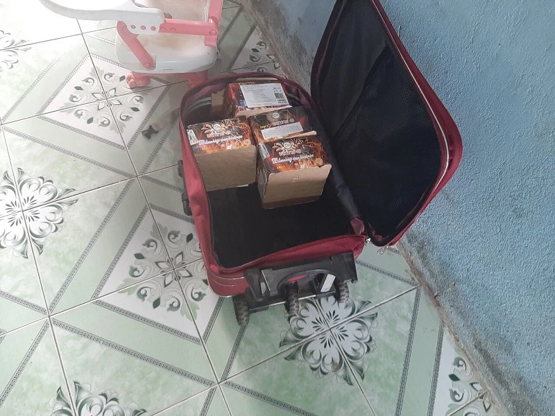 Qua kiểm tra, lực lượng Công an thu giữ hai hộp pháo hoa nổ với trọng lượng 3,2 kg. Bước đầu đối tượng khai nhận, thông qua mạng xã hội, đối tượng đã mua số pháo nổ nói trên mang về cất giấu để chơi Tết.