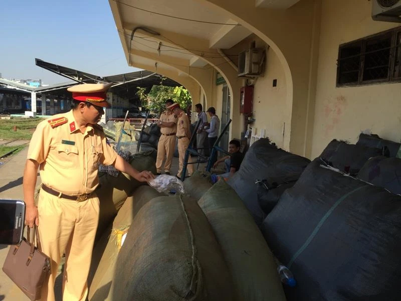 Lực lượng Quản lí thị trường TP.HCM phối hợp cùng Phòng 9 Cục cảnh sát giao thông kiểm tra 84 kiện hàng nghi nhập lậu tại ga Sài Gòn tháng 1-2019