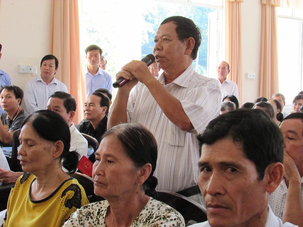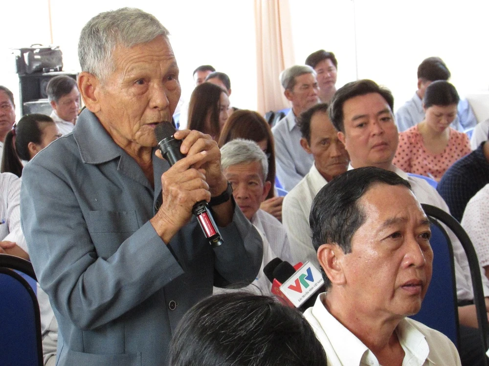 Cử tri Trần Hữu Vị phản ánh việc người dân bị Công ty 8 giữ giấy đỏ 10 năm nay... Ảnh: N.NAM