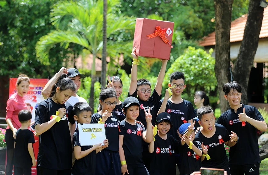 Những chiến binh nhí hào hứng trong cuộc chơi thú vị.