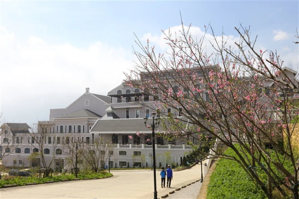 Dẫn lối vào khu du lịch là hàng ngàn gốc đào đủ chủng loại như đào thắm, đào phai, đào bạch quý hiếm… đang bật lên những sắc màu tươi tắn sau những ngày đông lạnh giá. Cứ thấy đào là thấy cả trời xuân. Thế nên, chỉ lên Fansipan mà ngắm đào thôi cũng đã lắm rồi!