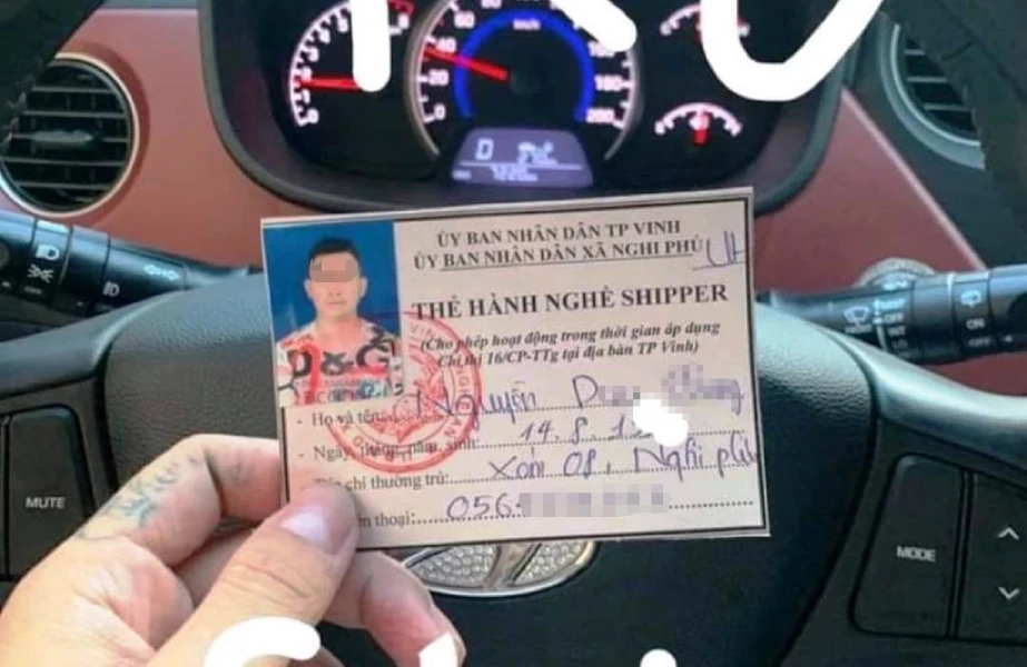 Ngay sau đó, Công an xã Nghi Phú và Công an TP Vinh đã mời anh Ch. lên làm việc bởi việc sử dụng thẻ hành nghề shipper vào mục đích khác và ra đường trong trường hợp không cần thiết.