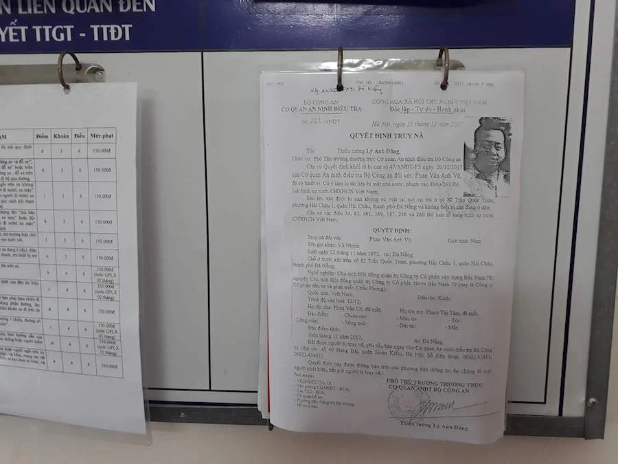 Theo ghi nhận vào sáng 25-12, tại phường UBND Hải Châu 1 (quận Hải Châu, TP Đà Nẵng), nơi cư trú của Vũ “nhôm” đã treo lệnh truy nã về hành vi cố ý làm lộ tài liệu bí mật nhà nước. Nhiều người dân đã rất tò mò tới xem lệnh truy nã này.
