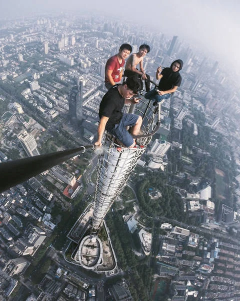 Vào cuối tuần trước, hình ảnh và đoạn video của 4 thanh niên leo lên đỉnh tháp Zifeng lan tràn khắp mạng xã hội Trung Quốc. Với chiều cao 450m, tòa tháp này là kiến trúc cao nhất ở Nam Kinh, đứng thứ 6 ở Trung Quốc và lọt tóp 14 tòa nhà cao nhất thế giới.