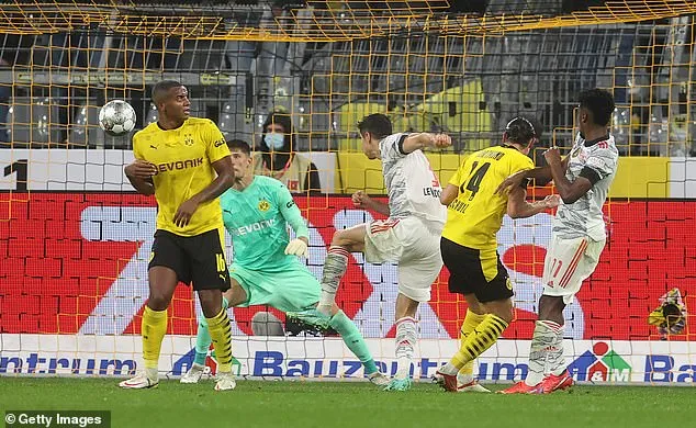 Sau đó ở phút 34, từ tình huống phối hợp đá phạt, tiền đạo Lewandowski có cú sút cận thành đưa bóng chạm tay Witsel trong vòng cấm, tuy nhiên trong pha bóng này trọng tài không cho Bayern Munich được hưởng phạt đền.