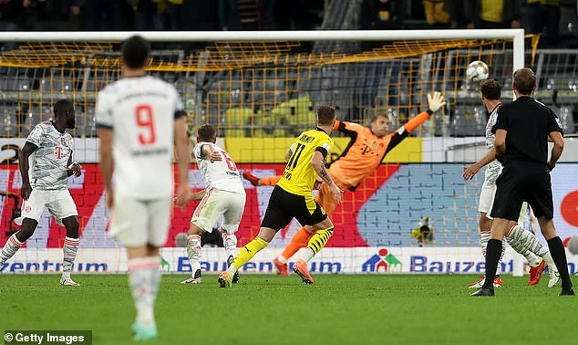 Phút 20 Dortmund có cơ hội rõ rệt để ghi bàn mở tỷ số, từ đường chọc khe của Bellingham, đội trưởng Marco Reus thoát xuống vòng cấm. Tuy nhiên ở tư thế đối mặt, Reus không thể đánh bại Neuer, khi thủ môn của Bayern đã xuất sắc cứu thua bằng chân.