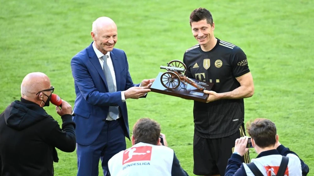 Biểu tượng "khẩu pháo" được trao cho Lewandwski. Ảnh: Bundesliga
