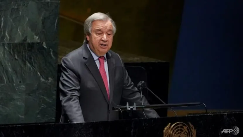 Tổng thư ký LHQ Antonio Guterres phát biểu tại cuộc họp lần thứ 58 của Đại hội đồng LHQ ở New York, Mỹ vào ngày 23-2 về cuộc khủng hoảng Nga-Ukraine. Ảnh: AFP