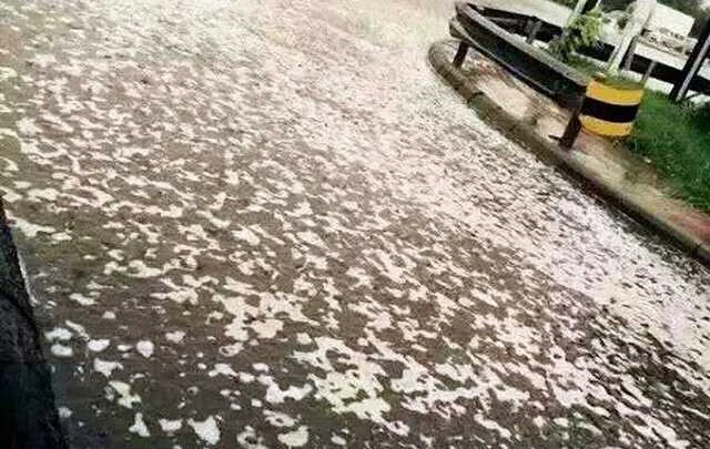 Bọt trắng xuất hiện khắp nơi trong khu vực thành phố sau khi mưa xuống (ảnh: Reuters)