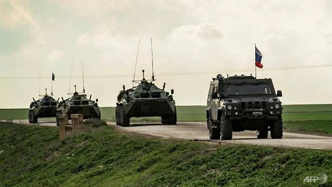 Lực lượng quân đội Nga tuần tra trên đường cao tốc M4 ở tỉnh Hasakeh, phía đông bắc Syria, gần biên giới với Thổ Nhĩ Kỳ, ngày 22-2-2020. Ảnh: AFP