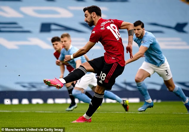 Bruno ghi bàn trên chấm 11m trong trận MU thắng Man City 2-0. ẢNH: GETTY