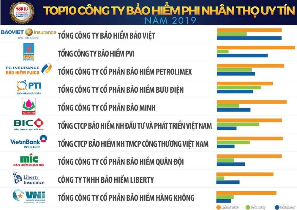 Bảng xếp hạng Top 10 Công ty bảo hiểm uy tín năm 2019.