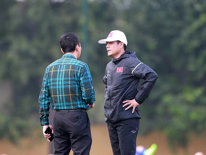 HLV Hữu Thắng lo lắng ở lần tập trung này do lịch đấu bất hợp lý khiến đội tuyển thiếu quân tập luyện. Ảnh: QUANG THẮNG