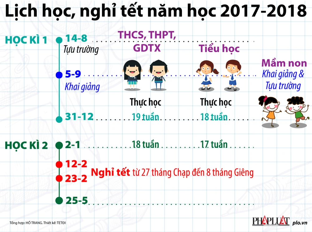 Lịch học, nghỉ Tết năm học 2017-2018