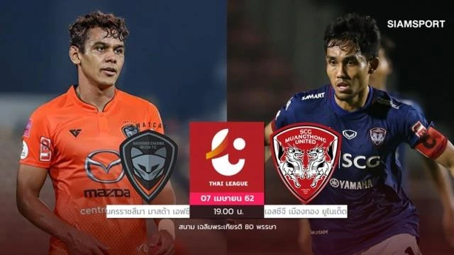 19 giờ hôm nay (7-4), Muangthong đá trên sân 80 năm kỷ niệm sinh nhật vua, Muangthong làm khách trước chủ nhà Nakhon Ratchasima.