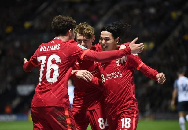 Các cầu thủ Liverpool trong trận thắng Preston North End ở Carabao Cup. ẢNH: GETTY