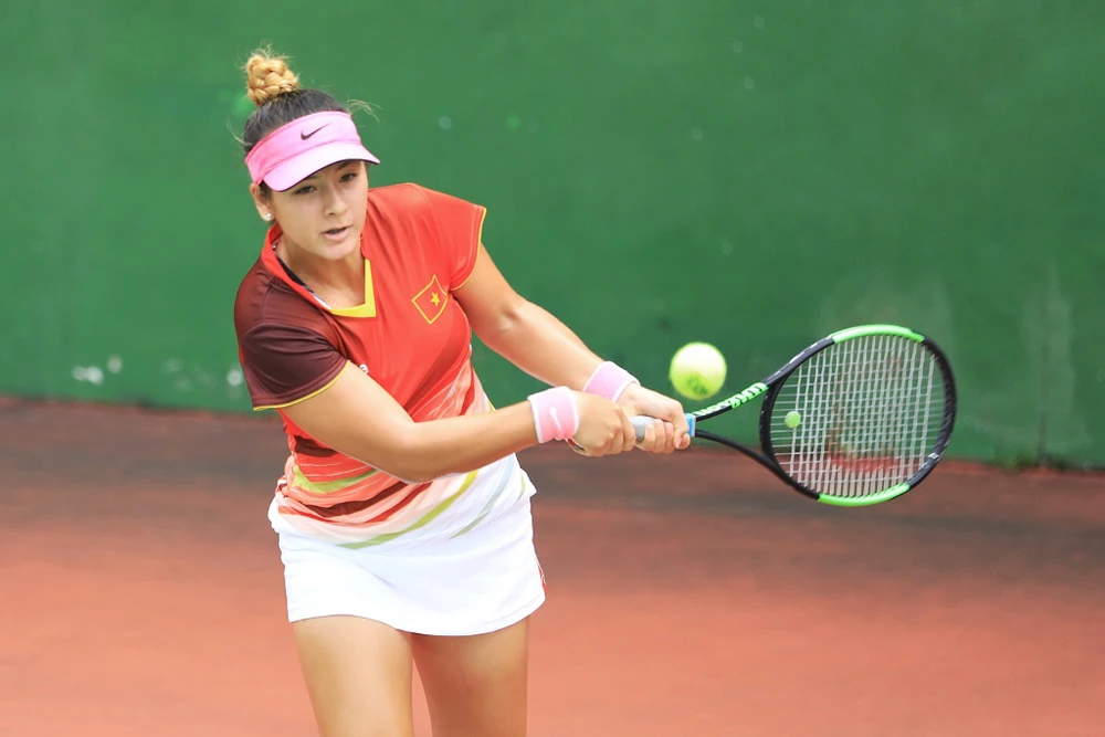 Tay vợt Việt kiều Hungary Csilla Fodor cùng đồng đội Savanna Lý Nguyễn đấu vòng 16 nội dung đôi nữ.