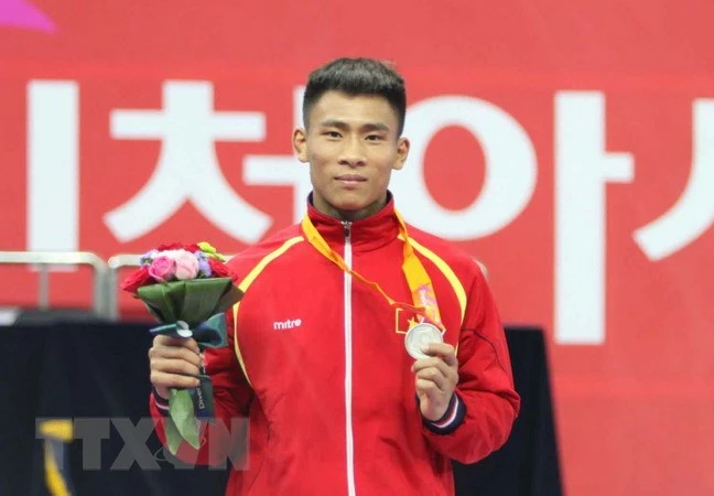 Á quân Asiad 17 Bùi Trường Giang giành quyền tranh HCV. Ảnh: TTXVN