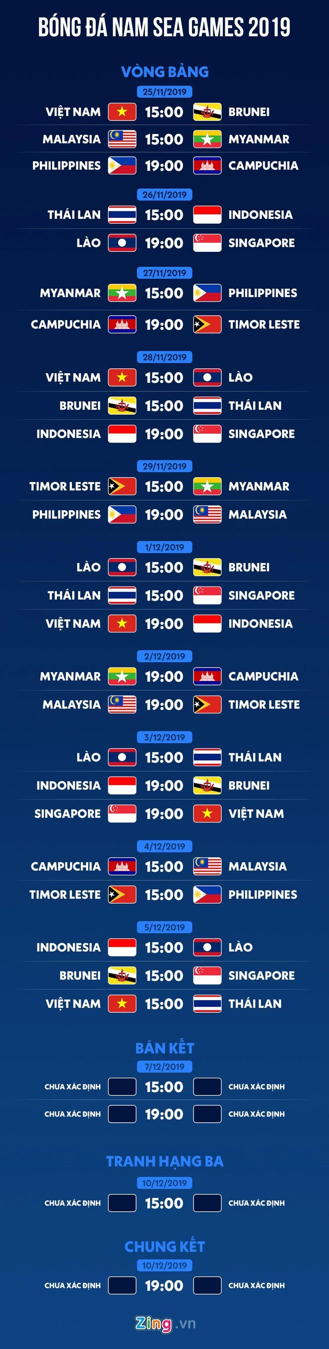 Lịch thi đấu môn bóng đá nam ở SEA Games 30. Nguồn ảnh: Zing.vn