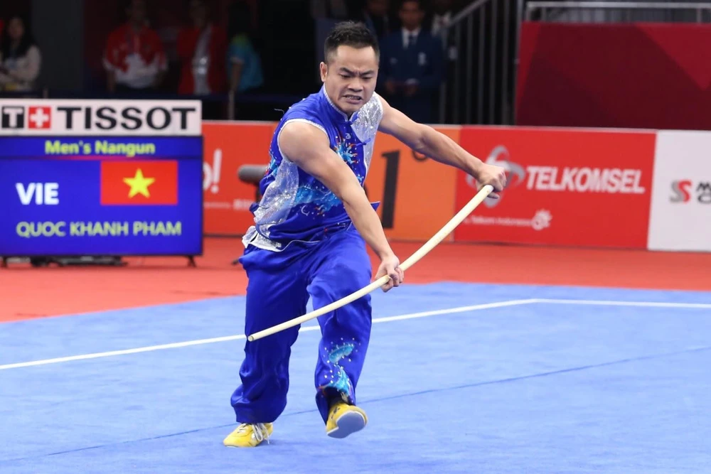 Võ sĩ Phạm Quốc Khánh dự tranh nội dung Nam côn. Ảnh: PHẠM HUY
