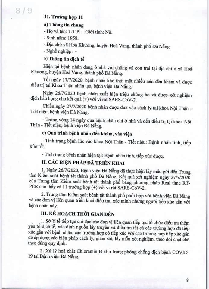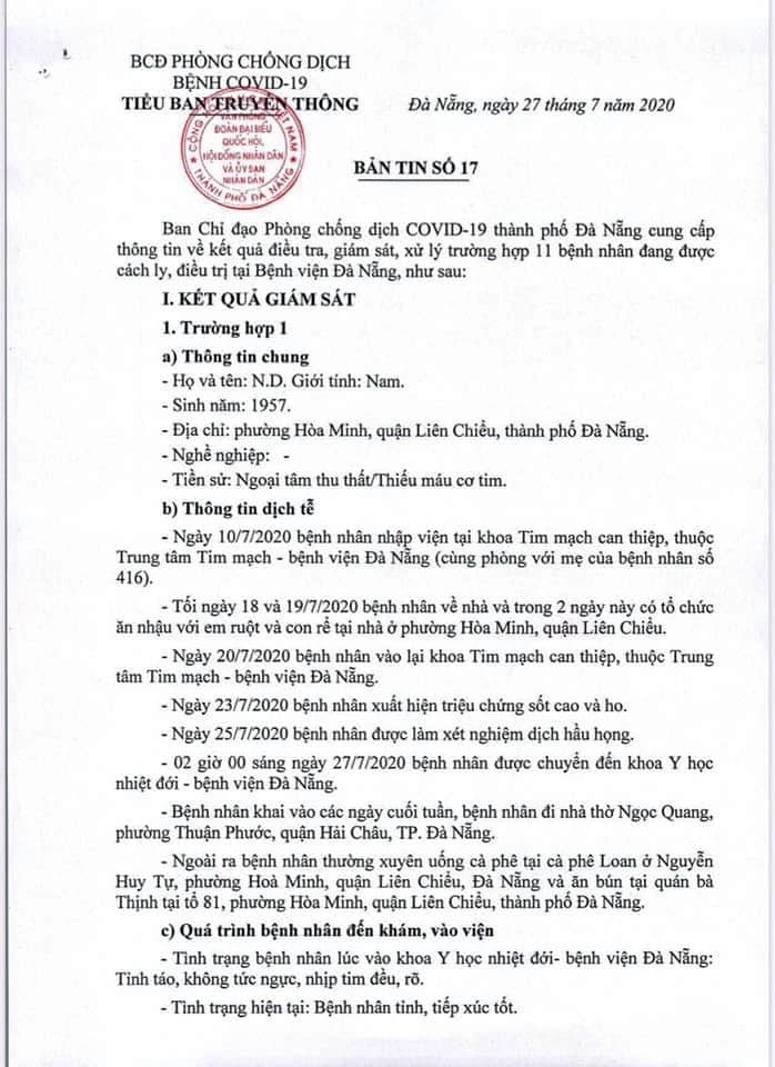 Tối 27-7, Ban chỉ đạo phòng chống dịch COVID-19 TP Đà Nẵng đã công bố kết quả điều tra, giám sát, xử lý thông tin liên quan 11 bệnh nhân COVID-19 mới.