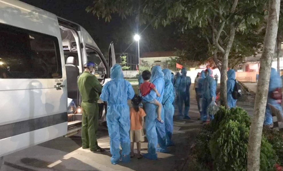 Lực lượng chức năng đưa những người F1 đi cách ly.