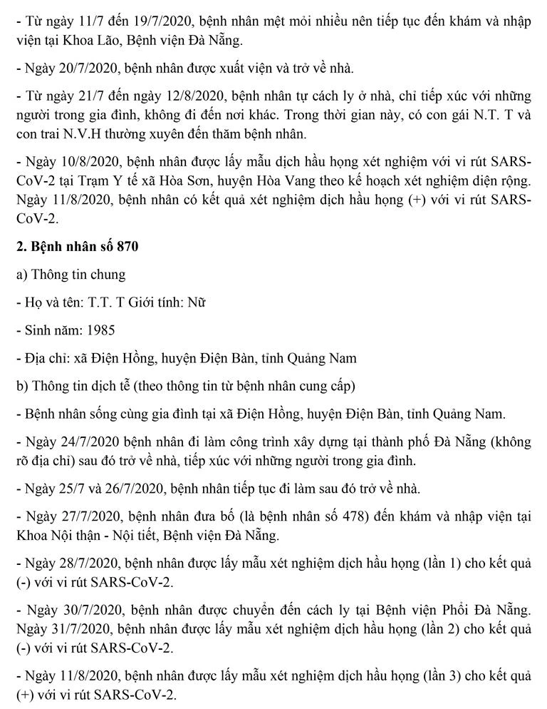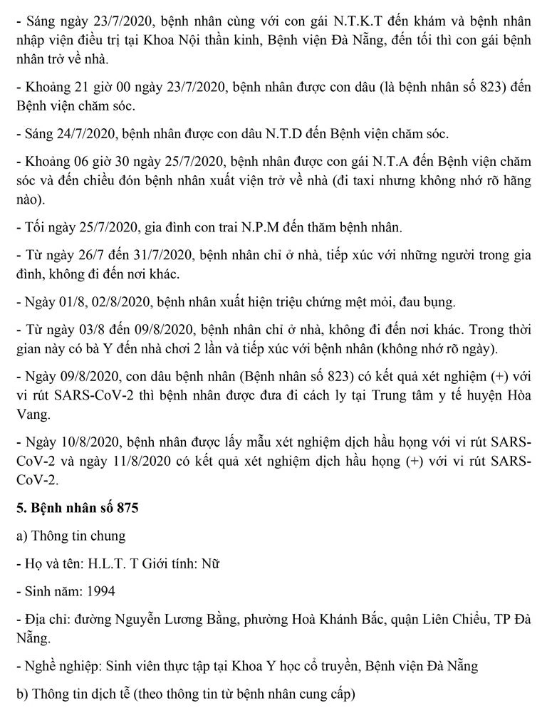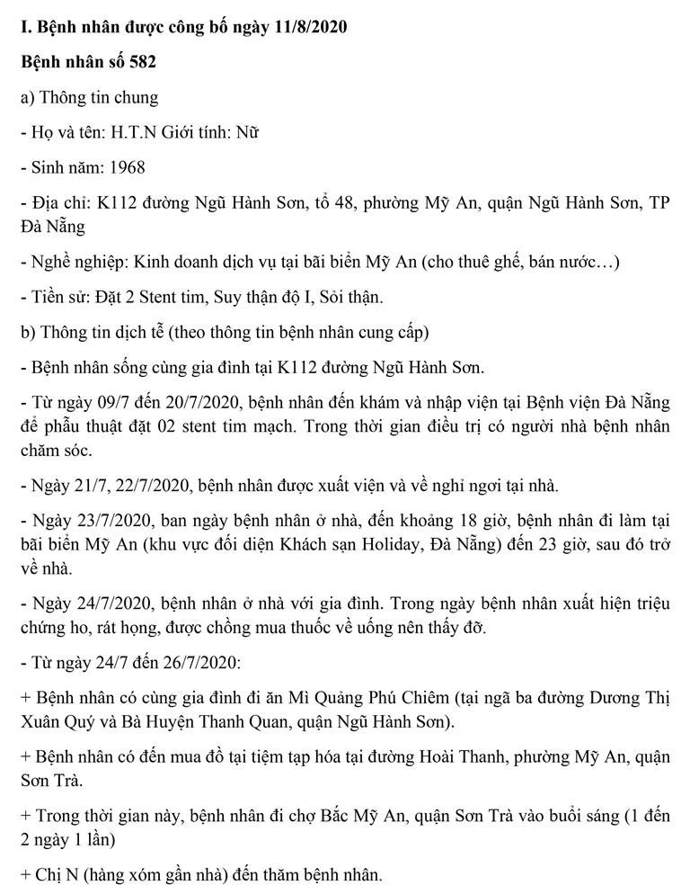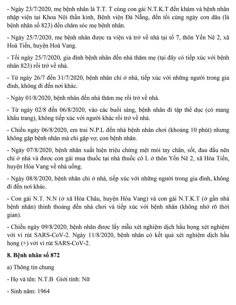 Tối 12-8, Ban chỉ đạo Phòng chống dịch COVID-19 TP Đà Nẵng cung cấp thông tin về kết quả điều tra, giám sát, xử lý đối với một trường hợp bệnh nhân còn lại mắc COVID-19 tại TP. Trường hợp này được công bố ngày 11-8 và 8/13 trường hợp bệnh nhân được công bố trong ngày 12-8.