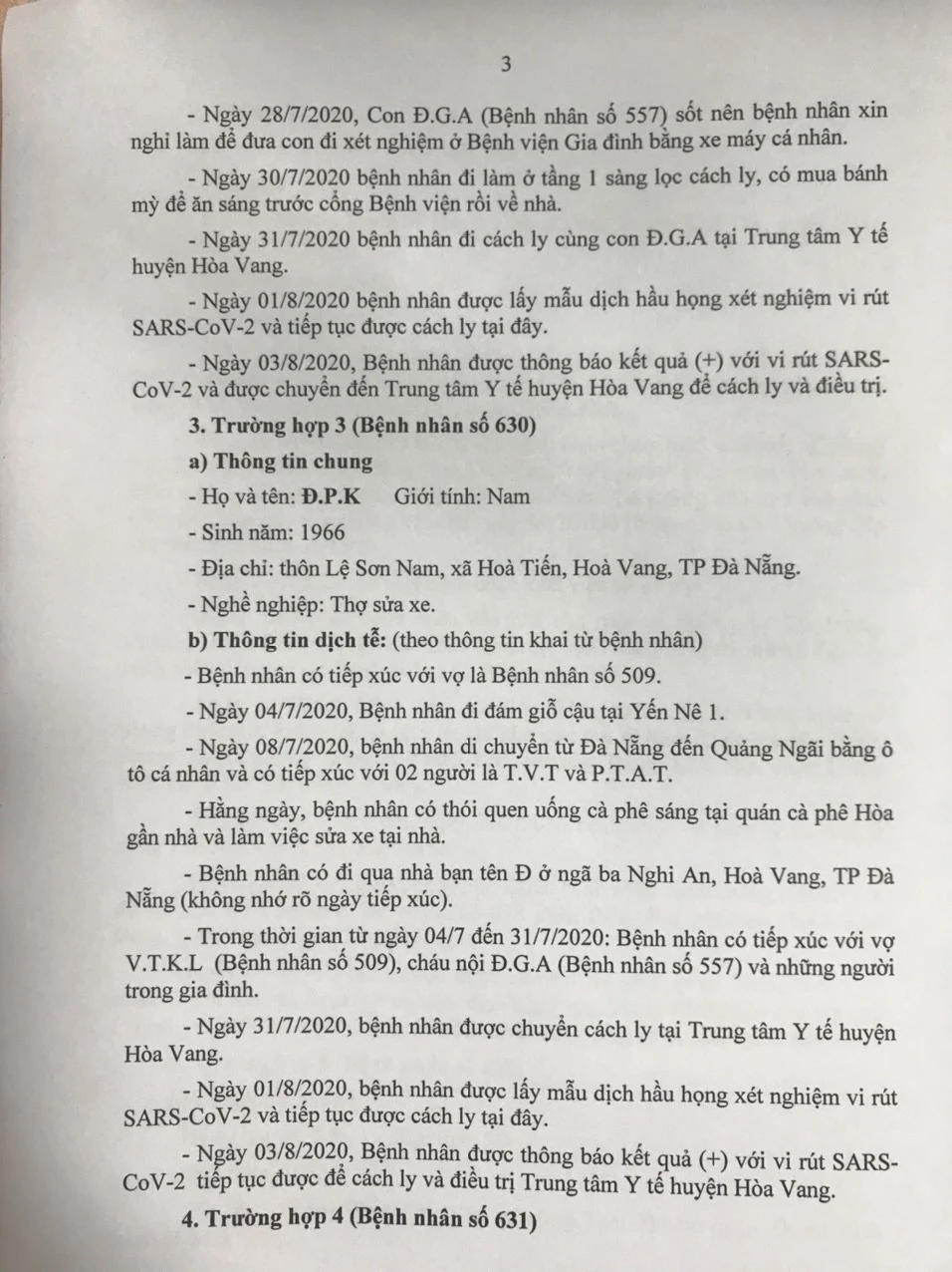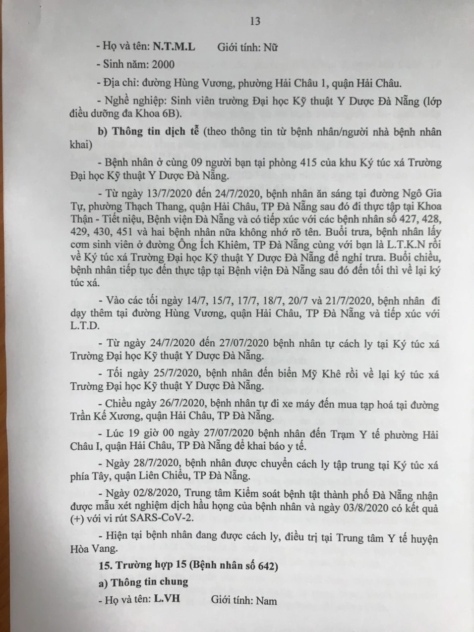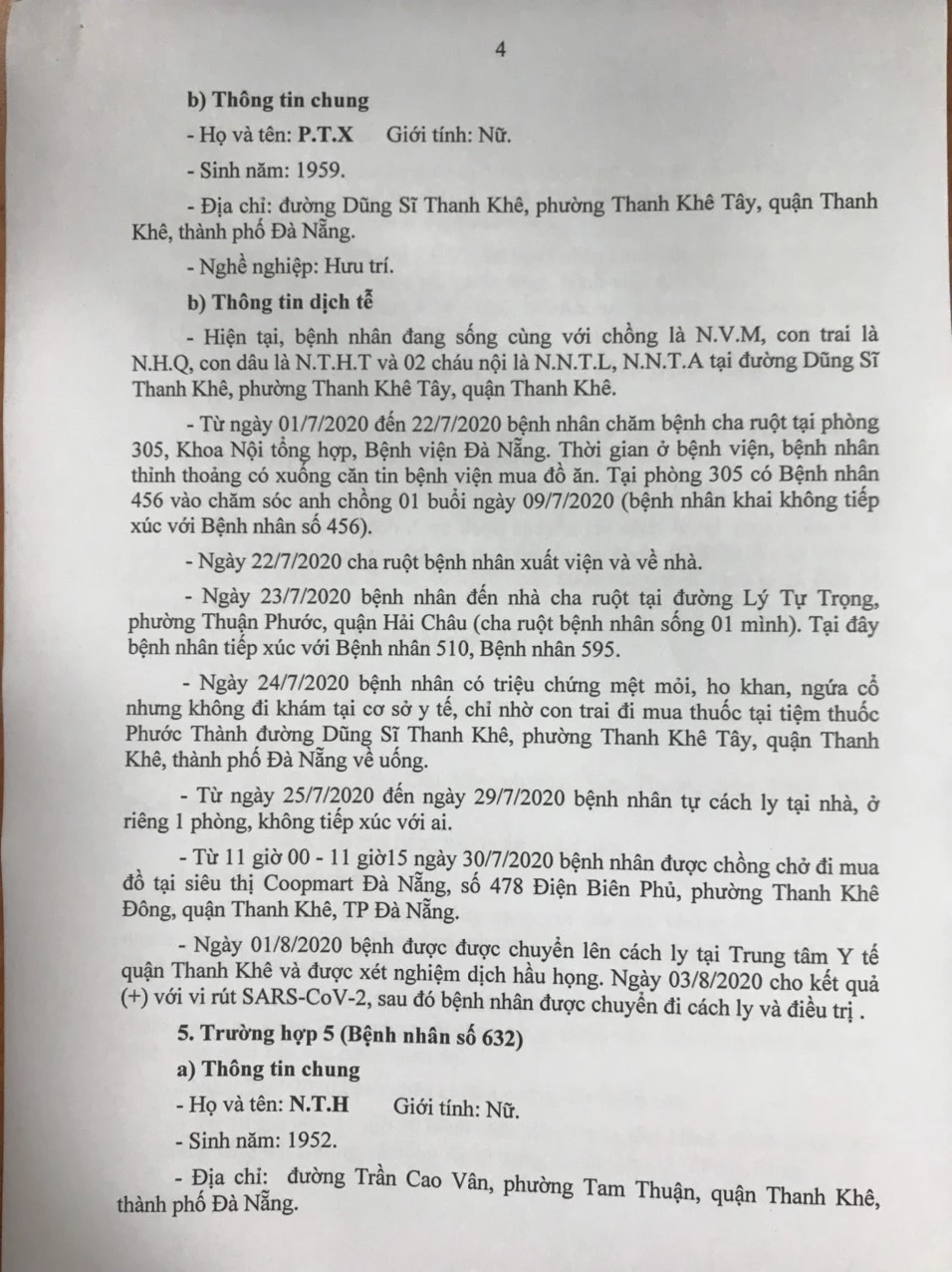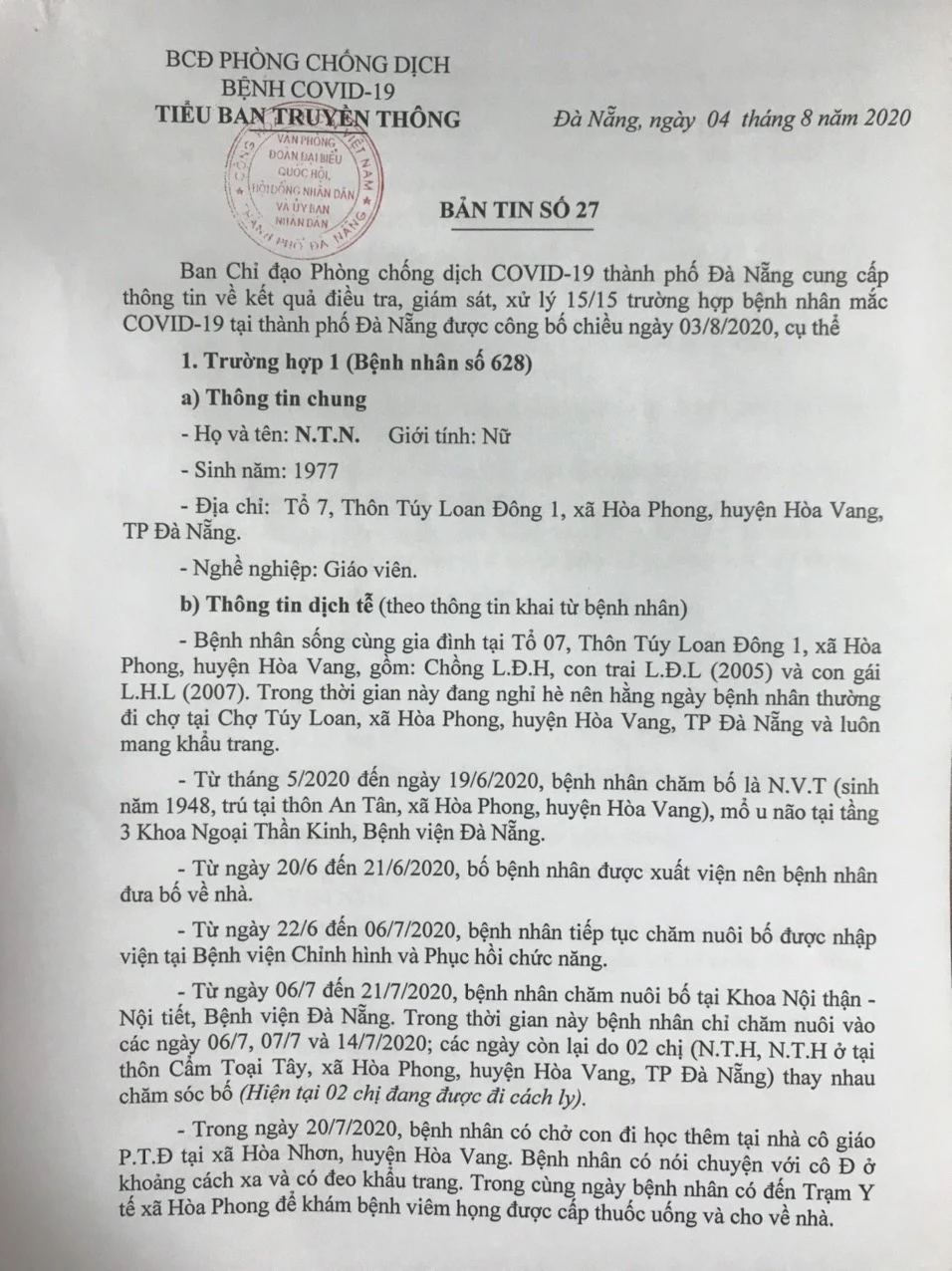 Tối 4-8, Ban chỉ đạo Phòng chống dịch COVID-19 TP Đà Nẵng cung cấp thông tin về kết quả điều tra, giám sát, xử lý 15/15 trường hợp bệnh nhân mắc COVID-19 tại TP được công bố chiều ngày 3-8.