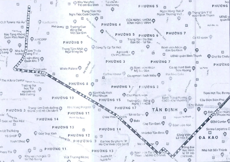 Lộ trình đoàn di chuyển trên địa bàn các quận Tân Bình, Phú Nhuận, 3 và 1.