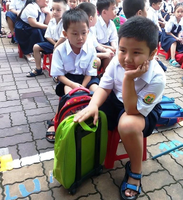Học sinh trường tiểu học Lương Thế Vinh, quận Gò Vấp trong ngày tựu trường năm học 2018-2020. Ảnh: NGUYỄN QUYÊN