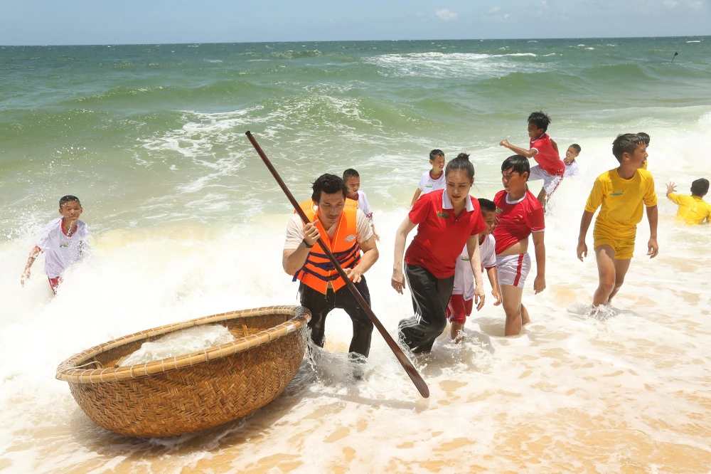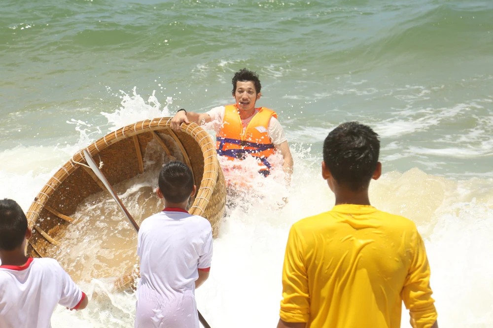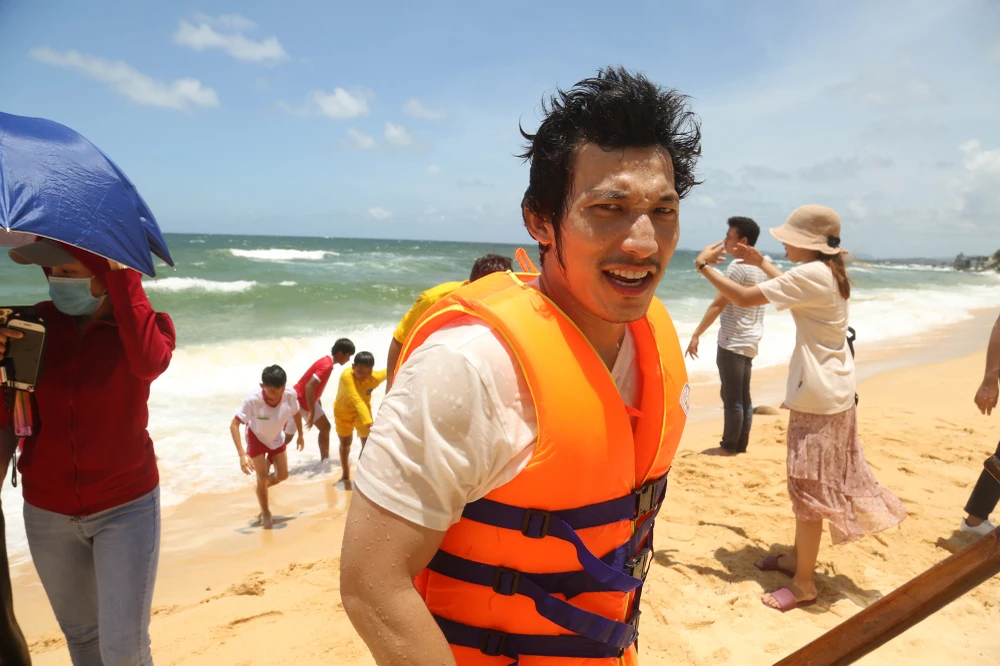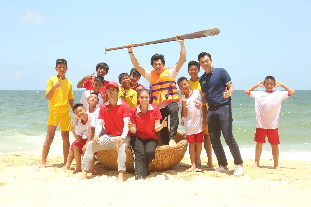 Nhận được sự giúp đỡ của các của các cầu thủ nhí, Liên Bỉnh Phát mới an toàn tấp được vào bờ cùng chiếc thuyền thúng của mình. Kiệt sức vì chống chọi với những cơn sóng, nam diễn viên “ngất xỉu” ngay sau đó.