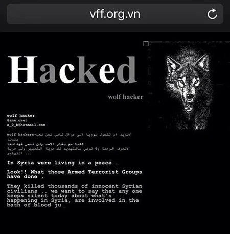 Trước đó, theo ghi nhận của PV, vào khoảng 22 giờ ngày 29-7, trang web của Liên đoàn Bóng đá Việt Nam đã bị tấn công và thay đổi giao diện trang chủ, nội dung được đăng tải bằng tiếng Ả Rập và tiếng Anh bên dưới cho thấy nhiều khả năng do Wolf Hacker thực hiện.