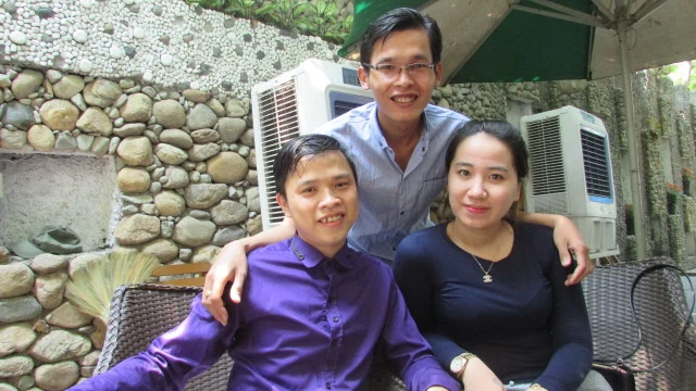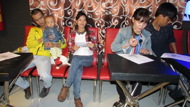 Đôi vợ chồng “ca sĩ kẹo kéo” đến từ Quảng Bình đã mang theo con nhỏ đến đăng ký tham gia liên hoan.