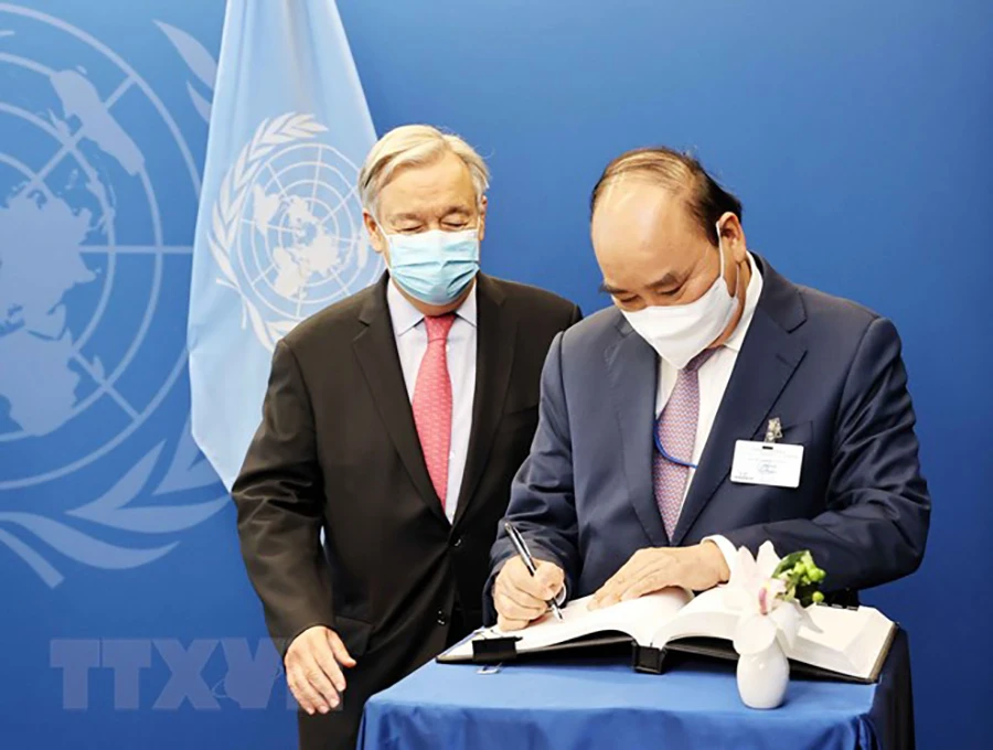 Tổng thư ký cũng bày tỏ mong muốn Việt Nam tiếp tục đóng góp vào nỗ lực ứng phó biến đổi khí hậu, nhất là nâng mức cam kết giảm phát thải khí nhà kính hướng tới Hội nghị COP26 tháng 11-2021 tại Glasgow (Scotland, Vương quốc Anh).