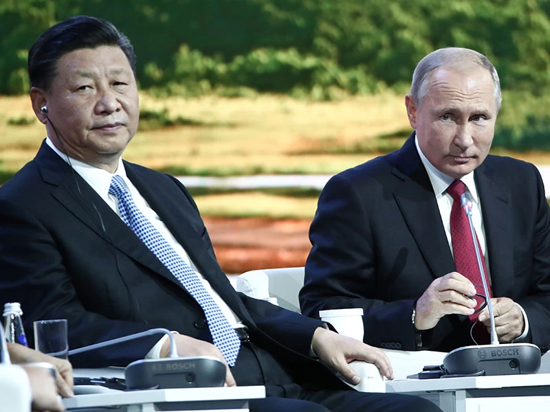 Chủ tịch TQ Tập Cận Bình (trái) và Tổng thống Nga Vladimir Putin (phải) tham dự Diễn đàn Kinh tế phương Đông ở Nga vào tháng 9-2018. Ảnh: AP