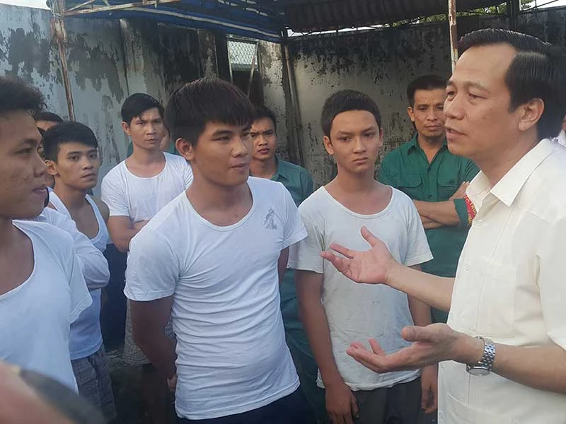 Bộ trưởng LĐ-TB&XH Đào Ngọc Dung thăm hỏi, trò chuyện với học viên tại cơ sở cai nghiện của tỉnh Đồng Nai. Ảnh: T.DŨNG
