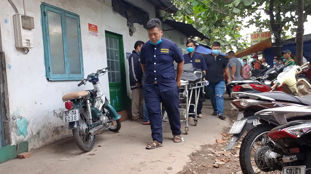Các thi thể nạn nhân được đưa khỏi ngôi nhà cháy ở quận 8. Ảnh NT