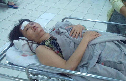 Sau khi hành hung, hai kẻ lạ bỏ đi, người dân đưa chị vào bệnh viện cấp cứu với nhiều vết thương ở đầu, mắt và tai.