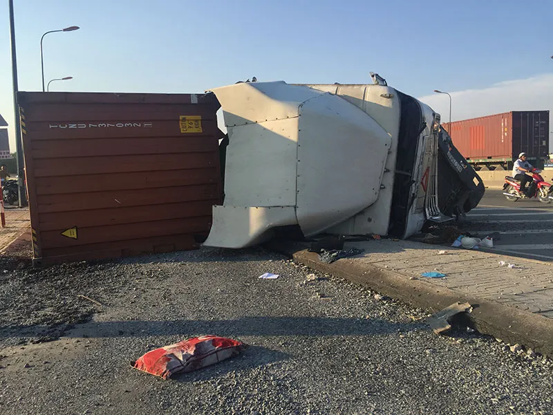 Khi tài xế cho phương tiện này ôm cua tại vòng xoay Phú Hữu (địa bàn phường Tăng Nhơn Phú B, quận 9, TP.HCM) thì phương tiện này bất ngờ lật nhào qua phải.