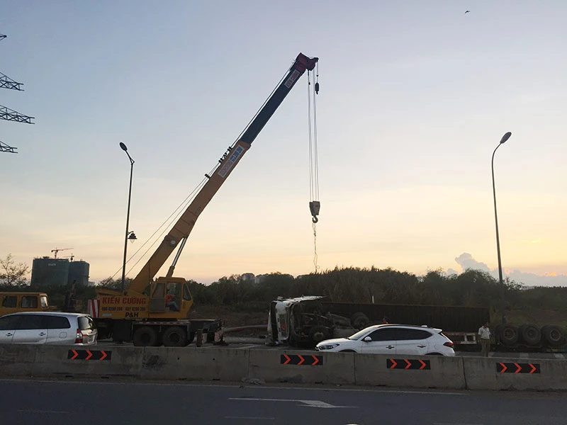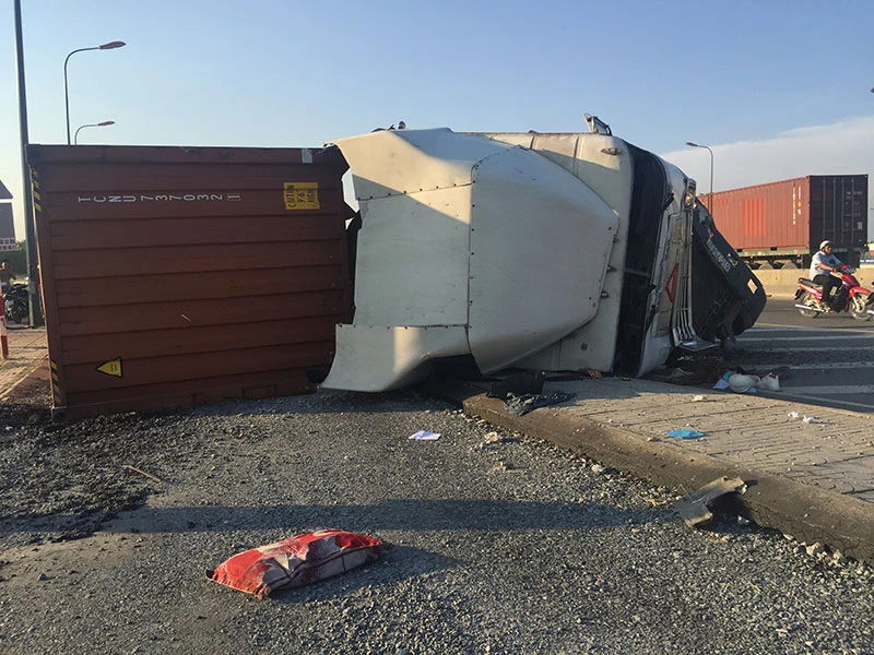 Trong một thời gian ngắn đã xảy ra bảy vụ lật xe container ở khu vực đường Võ Chí Công, quận 9, TP.HCM