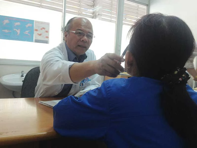 BS Đỗ Quang Hùng, BV Chợ Rẫy, kiểm tra cho bệnh nhân. Ảnh: HẢI ÂU