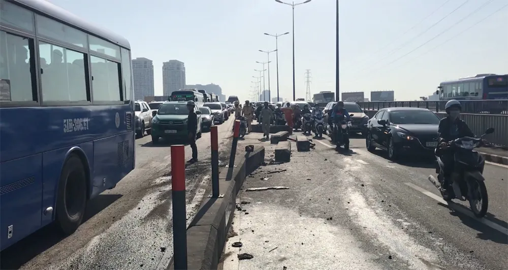 Sau va chạm, các khối bê tông tiếp tục văng qua làn đường dành cho ô tô con khiến ô tô bốn chỗ 51F-436.14 chạy từ sau tới tông trực diện vào các khối bê tông này, vỡ nát phần đầu xe.