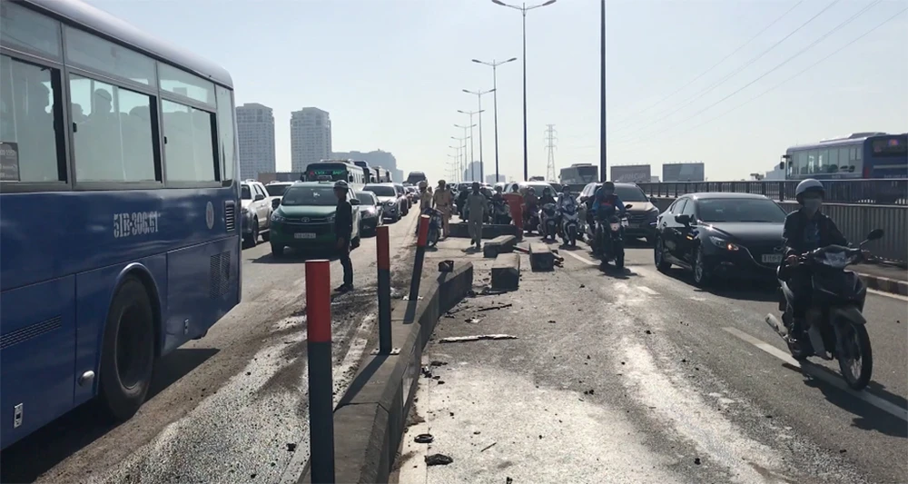 Ảnh hưởng từ va chạm khiến tuyến xa lộ Hà Nội đoạn gần cầu Sài Gòn đã xảy ra tình trạng ùn tắc rất nghiêm trọng, kéo dài nhiều cây số trong hàng giờ liền.