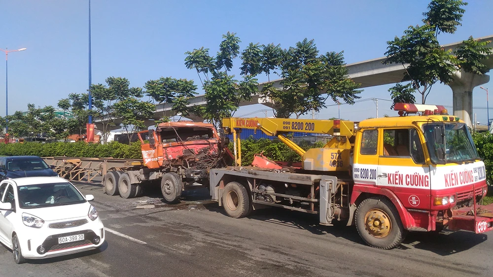 Cũng vào sáng cùng ngày, xe đầu kéo 57L-5125 lưu thông trên xa lộ Hà Nội theo hướng từ quận 9 đi Đồng Nai.