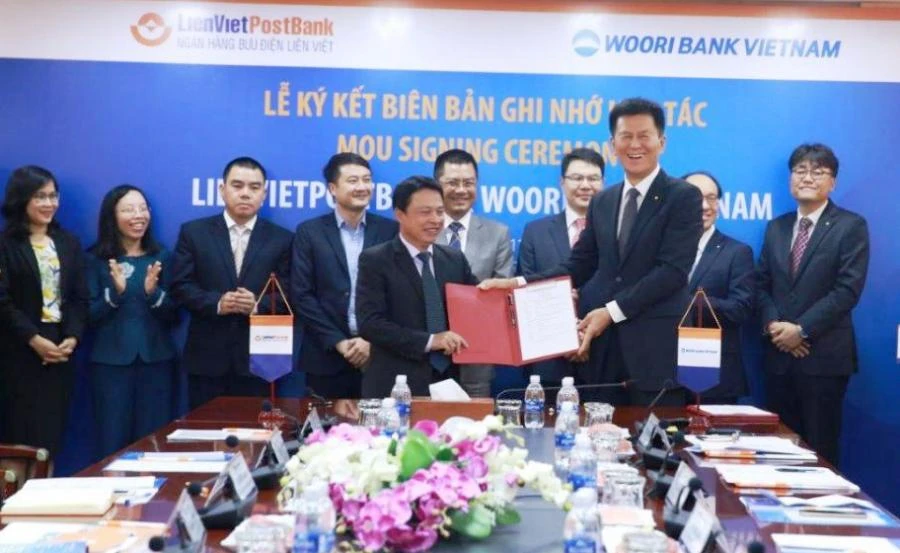 Lễ ký kết Biên bản ghi nhớ hợp tác (MOU) giữa LienVietPostBank và Woori Việt Nam vào cuối năm 2017