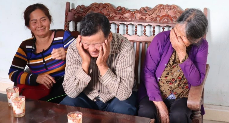 Mẹ của ông Phổ (bên phải) bật khóc khi ông Phổ còn sống sót trở về sau 42 năm xa nhà. Ảnh: Đ.LAM