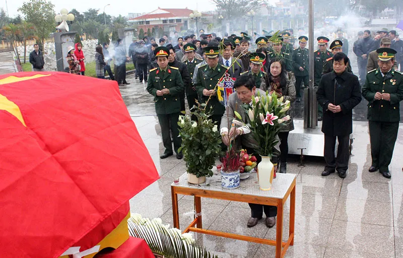 Sau 35 năm Liệt sĩ Lê Đình Chinh nằm lại ở nơi địa đầu Tổ quốc, anh đã được đồng đội, chính quyền địa phương và gia đình đưa di hài về nghĩa trang quê nhà tháng 1-2013. Ảnh: Đ. TRUNG