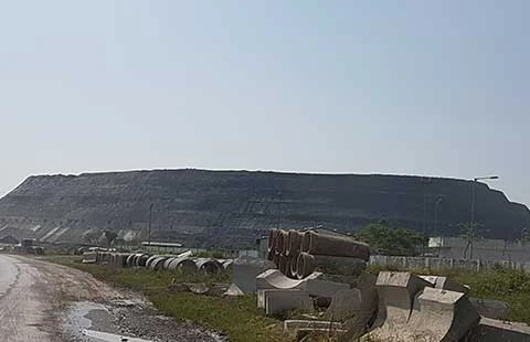 Nhìn từ xa, bãi chứa chất thải gyps trông như quả núi. Ảnh: HẢI ĐƯỜNG