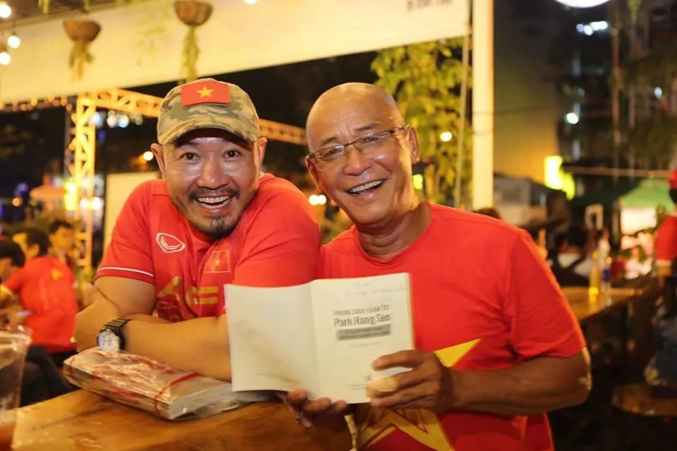 Anh Tiến Phạm (trái) là một cổ động viên cuồng nhiệt của bóng đá Việt Nam và CLB Thanh Hóa. Ảnh: ANH NGHĨA